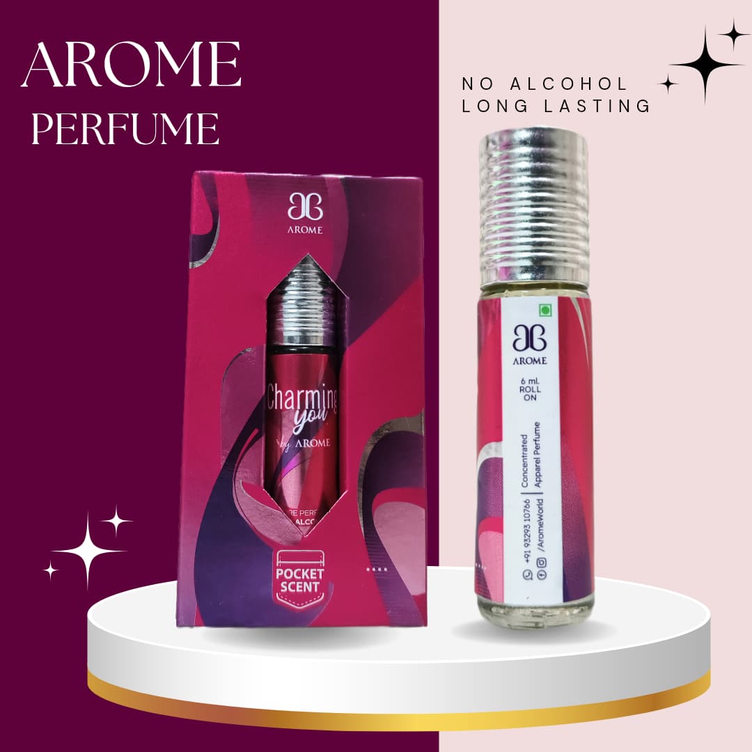 Stay fresh on the go with Arome Charm You – a bold and beautiful fragrance packed in a sleek 6ml roll-on bottle. Alcohol-free, skin-friendly, and designed to keep you charming all day.