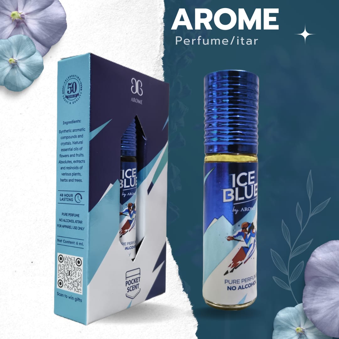 Experience the crisp freshness of Arome Ice Blue Attar. This long-lasting, alcohol-free roll-on perfume delivers an icy burst of fragrance in a compact 6ml bottle – perfect for pocket-friendly freshness on the go.