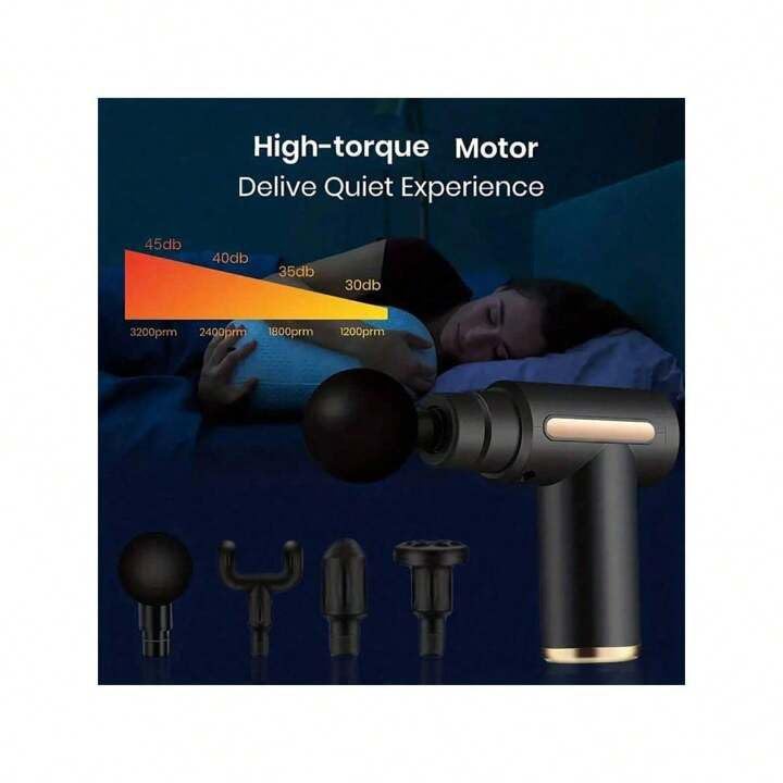 Relieve your body’s stress and muscle tension with this high-performance Massage Gun. With 6 adjustable speed levels, 4 interchangeable massage heads, and a powerful yet quiet motor, it’s perfect for athletes, fitness enthusiasts, or anyone seeking daily relaxation.